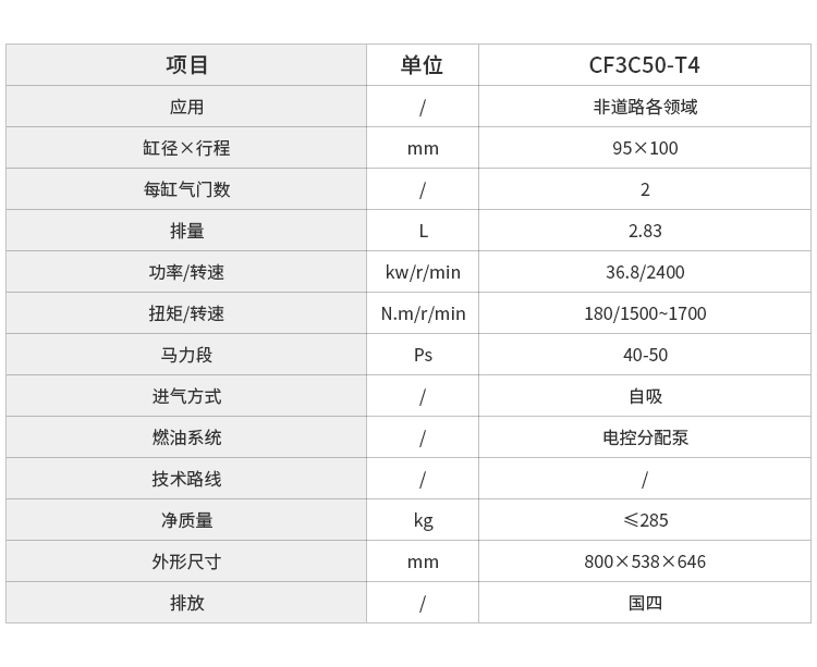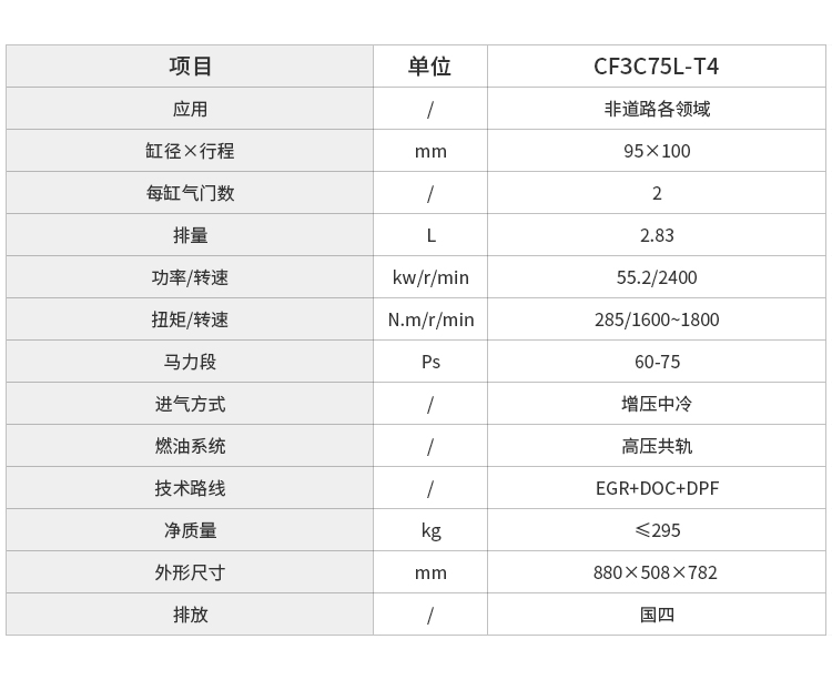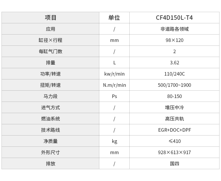 37kW 以下采用電控 VP 泵 / 電控共軌,不帶后處理;37kW~129kW 采用 EGR+DOC+DPF 技術路線,129kW~220kW 采用 DOC+DPF+SCR 技術路線。