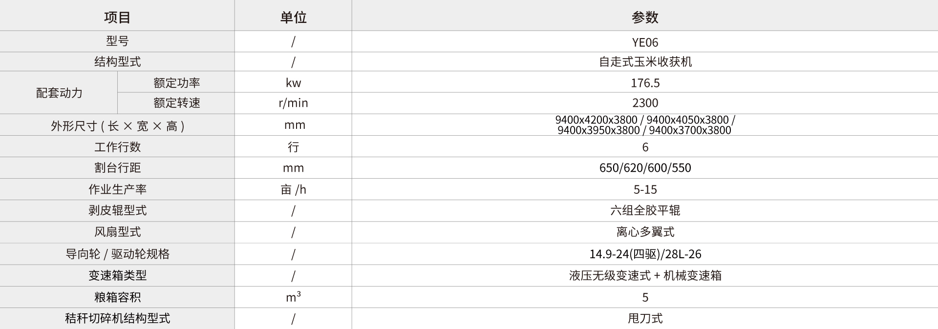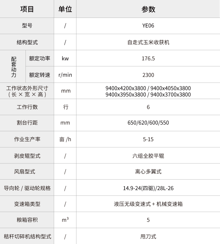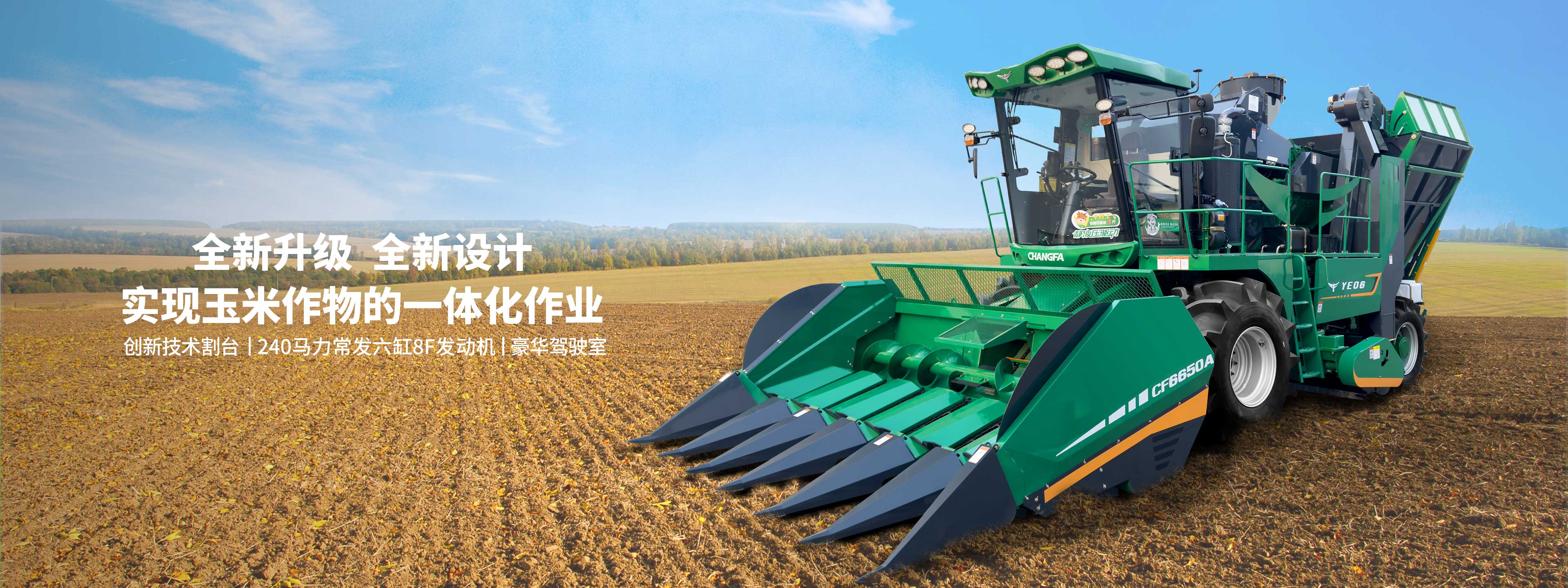 常發(fā)YE06玉米果穗收獲機可實現(xiàn)玉米作物的摘穗、輸送、剝皮、裝箱以及秸稈粉碎還田的一體化作業(yè)。