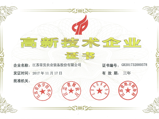 公司堅持以市場為導向、超越主流產品的開發(fā)理念,專注產品核心技術研發(fā)和基礎理論研究,已具備拖拉機、收割機、插秧機等整機產品和六缸及以下柴油發(fā)動機的自主設計開發(fā)能力,產品多功能化、智能化水平正在逐步發(fā)展與提高。江蘇常發(fā)農業(yè)裝備股份有限公司及其子公司(常州常發(fā)重工科技有限公司,常州常發(fā)農業(yè)裝備工程技術研究有限公司)有效專利數量400余件,授權發(fā)明專利數量40余件。作為一家綜合型農業(yè)機械制造企業(yè),以“造就高素質員工,制造高品質產品;創(chuàng)建高水準企業(yè),爭創(chuàng)高知名品牌”為經營理念。憑借雄厚的技術力量和先進的工藝設計生產出了諸多國內外高品質的農機產品。